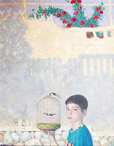 塔吉克斯坦画家博洛诺瓦·萨奥达的油画作品《石榴》为普通劳动者的形象注入了丰碑式的庄严感;巴基斯坦画家拉哈特·纳维德·马苏的综合材料作品《山地少女》将水彩的灵动与金箔的华丽巧妙结合;吉尔吉斯斯坦画家朱努什夫·扎克什贝克的油画作品《祖母肖像》在质朴的笔触中融入了画家对生活的热爱;乌兹别克斯坦画家法伊祖拉·阿赫马达利耶夫的油画作品《来自卡什卡达里亚的年轻人》中,充满形式感的人物造型与富有民族特色的纹样为画面增添了情趣;中国画家韩振刚的中国画作品《盛装少女》描绘了身着华丽盛装的女孩形象,东方女性的含蓄之美和民族服饰的华丽之美充溢着画面。展厅内,有观众熟悉的流派和风格演绎,也有别出心裁的个性化阐述;有经典肖像的精妙写实描绘,也有象征和超现实手法的夸张变形;有关注空间的传统方法,也有注重平面的现代图式。相同的是,画家们都带着真情去表现生活、抒发感怀,这些源于真实生活又倾注画家美好希望的作品,汇聚在一起最终形成一幅美丽的人文图景。
