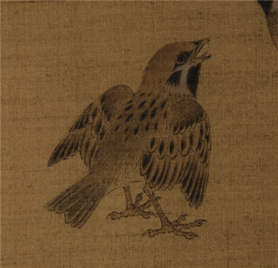 黄筌父子的笔法程式,是宋代院体画最为重要的组成部分,这件传为黄筌的《写生珍禽图》虽然在学术界尚有争议,但由于在技法源流上与黄居寀《山鹧棘雀图》、崔白《寒雀图》有紧密的内在关联,同时也体现了作者对多种禽鸟、草虫和鳞介有着极为高超的笔墨与造型能力,因此我在宋代花鸟临摹课程中一直很重视这幅作品的价值与意义。