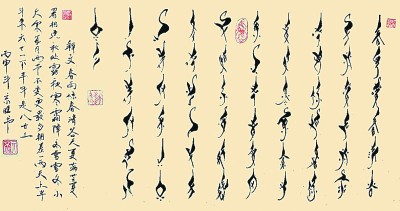 研究发现,女书基本单字共有1700多个,其中借源于汉字而造的占80%,暂不明来历的自制字占20%。女书字的外观形体呈长菱形的“多”字式体势,右上高左下低。斜体修长,秀丽清癯。乍看上去,好似甲骨文,又有许多眼熟的汉字痕迹。
