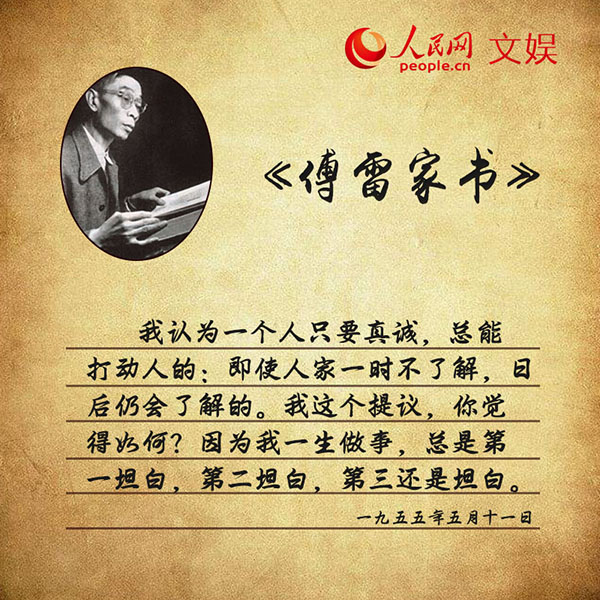 “家书抵万金”。《傅雷家书》中不只有温暖的亲情,还有对于子女精神、人格成长上的循循善诱与悉心关怀。书中展现的家训感情纯真、质朴,字字苦心孤诣,如春风化雨,影响了一代代读者。今天,人民网文娱部精选《傅雷家书》中的片段,带大家一起重温家训家风的力量。