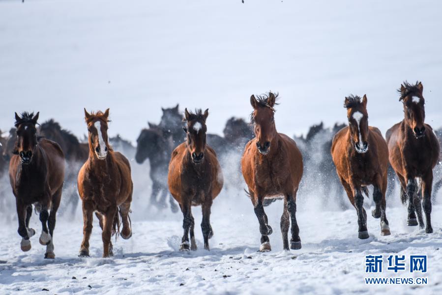 这是在新疆伊犁哈萨克自治州昭苏县天马旅游文化园拍摄的驰骋的骏马(2020年12月20日摄)。