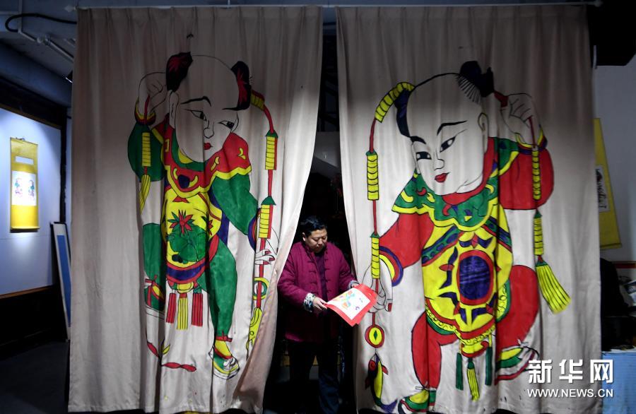 1月19日,开封市朱仙镇的年画艺人在晾晒木版年画。新华社记者 郝源 摄