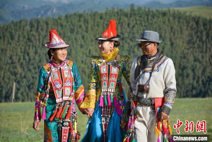 图为玛尔健(中)与阿扎阿娜(爸爸妈妈)去甘肃省张掖市肃南县康乐草原看赛马会。(资料图) 玛尔健供图