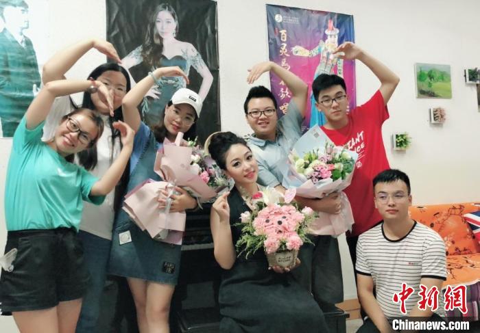 图为在湖南文理学院的琴房内, 玛尔健(中)与学生在一起。(资料图) 玛尔健供图