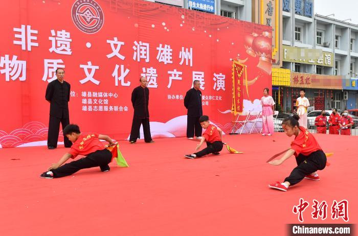 中新网雄安9月28日电 (记者崔涛)为弘扬中华优秀传统文化,营造欢乐、文明的节日氛围,雄安新区雄县28日举办非物质文化遗产展演活动,鹰爪翻子拳、西河大鼓、亚古城音乐会等50余种“非遗”项目亮相活动现场。