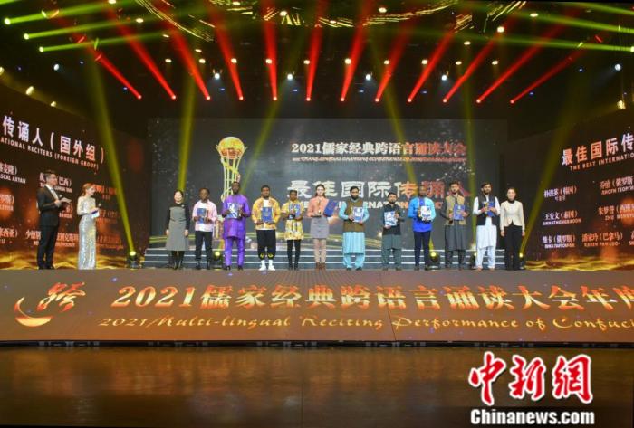 中新社济南12月24日电 (吕妍)“2021儒家经典跨语言诵读大会年度盛典”12月24日在济南举行。来自中国、美国、俄罗斯、日本等47个国家的中华文化爱好者同诵儒家经典,用“国际语言”讲好“中国故事”,促进中外文明交流互鉴。