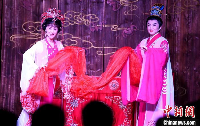 福建省芳华越剧院青年演员徐伟钗和赵阳表演《枫落寒江》选段。 王东明 摄