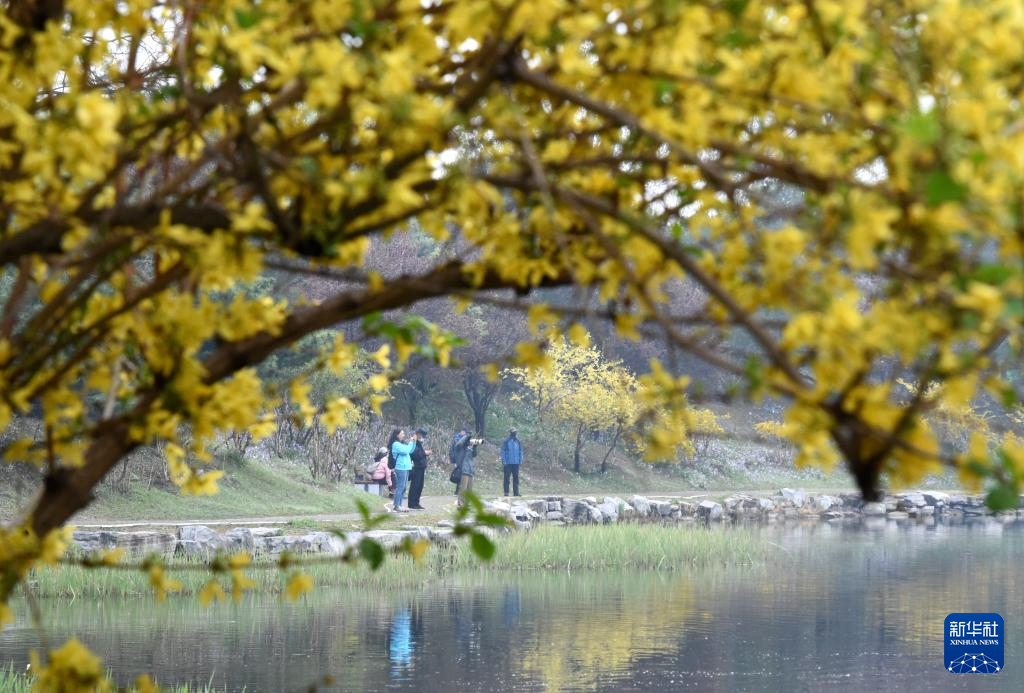 4月9日,游客在北京圆明园踏青赏花。