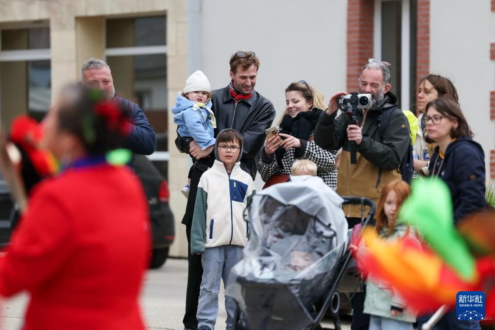 4月11日,在法国诺曼底大区芒什省阿贡-库坦维尔,观众观看妈祖巡游。