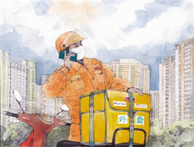 (七)午餐时段,外卖小哥迎来一天中最繁忙的时刻。他们穿梭在大街小巷,奔波于楼上楼下,只为将热腾腾的饭菜准时送到顾客手中。