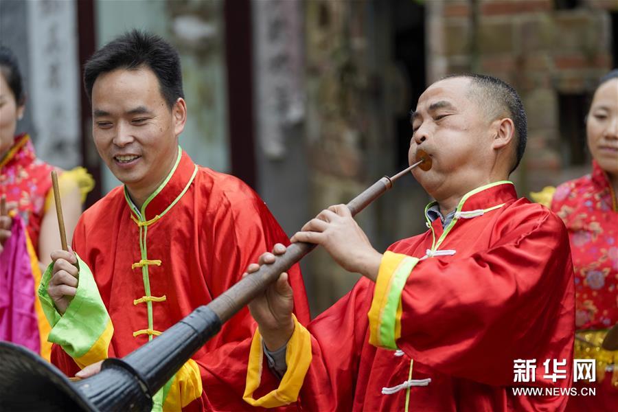 4月21日,永城吹打的国家级非遗代表性传承人刘道荣在进行排练。新华社记者 刘潺 摄
